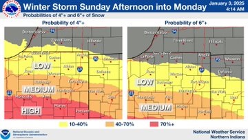 In a Friday afternoon press briefing, Mike Ryan with the National Weather Service in Indianapolis said the first round of snow is expected to start moving in Sunday morning and last through the overnight period.