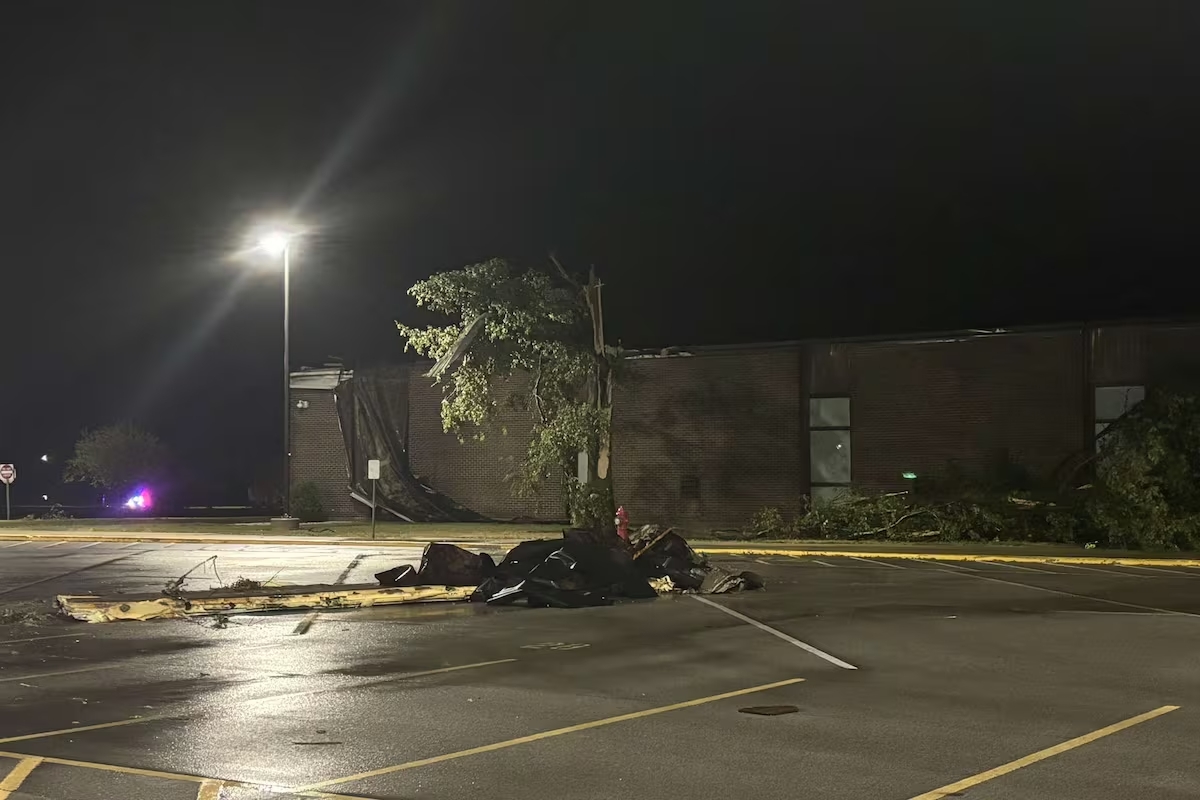 PORTLAND, Ind. (WOWO) – The National Weather Service has confirmed a tornado caused damage to Jay County High School during an unexpected severe weather event Sunday night.